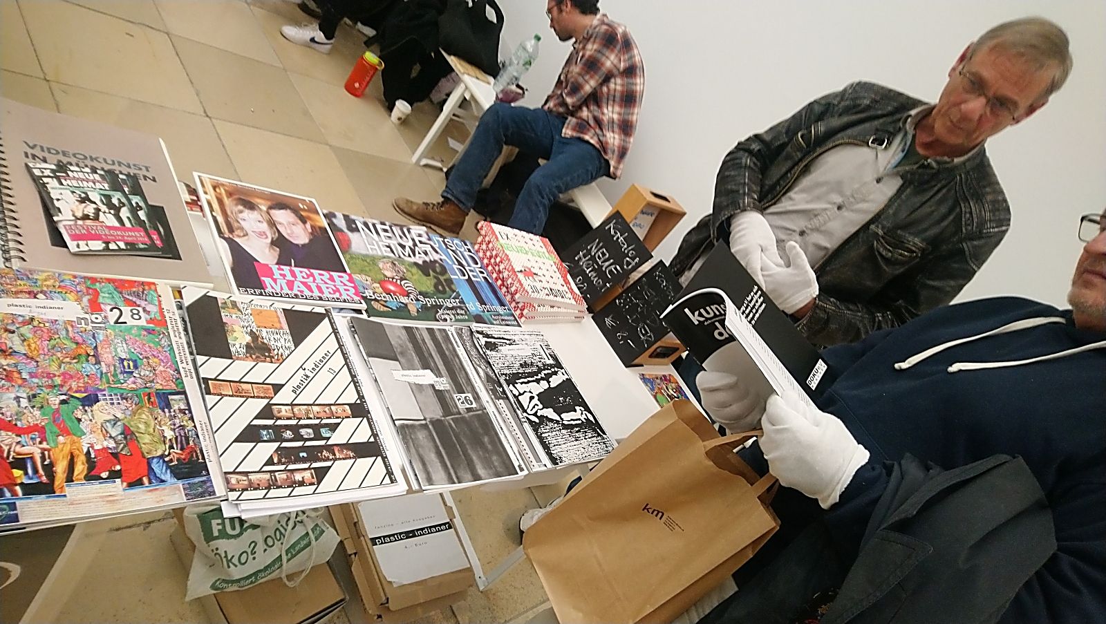 sowie Künstlertische mit Einzelpublikationen von Künstlern, ein Tisch von fructa space mit Künstlerpublikationen und ein Tisch der Akademie der Bildenden Künste München mit Arbeiten von Studenten.